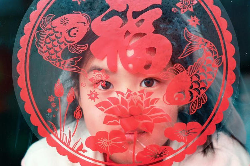 贴窗花迎新年
