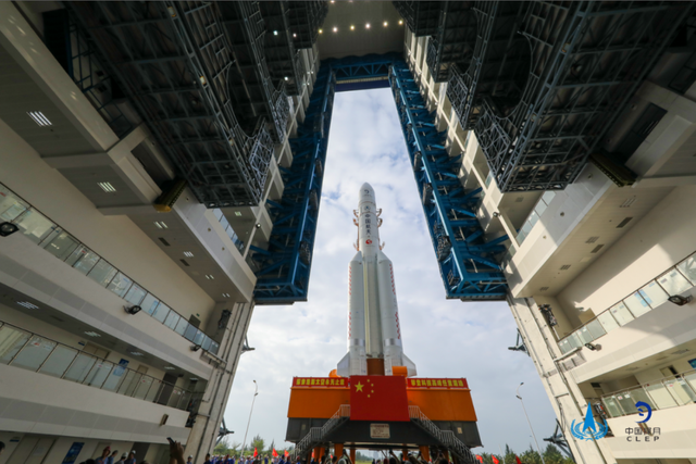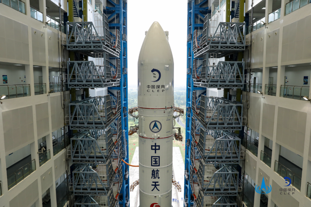 记者从国家航天局获悉,11月17日,长征五号遥五运载火箭和嫦娥五号探测器在中国文昌航天发射场完成技术区总装测试工作后,垂直转运至发射区,计划于11月下旬择机实施发射。