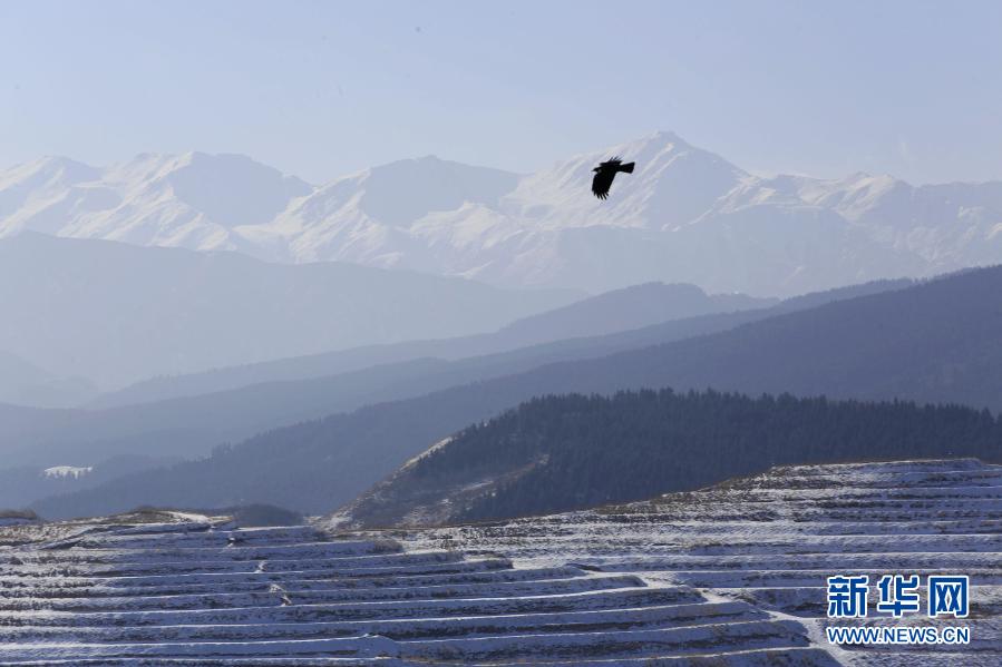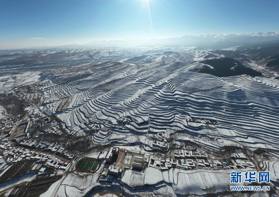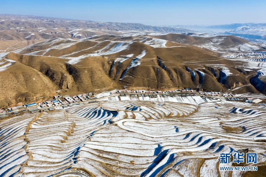 12月7日拍摄的甘肃天祝藏族自治县大红沟镇的梯田雪景(无人机照片)。新华社发(姜爱平 摄)