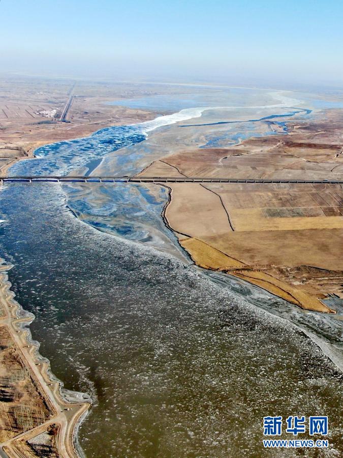 这是12月24日拍摄的黄河内蒙古磴口河段(无人机照片)。
