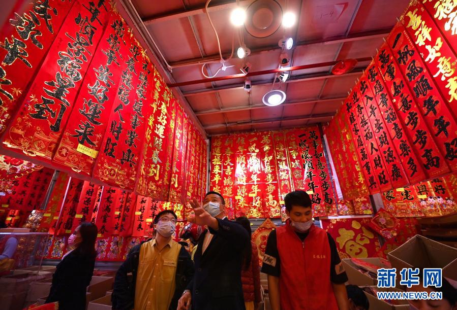 1月30日,市民在海口市博爱南路的年货市场选购春联。