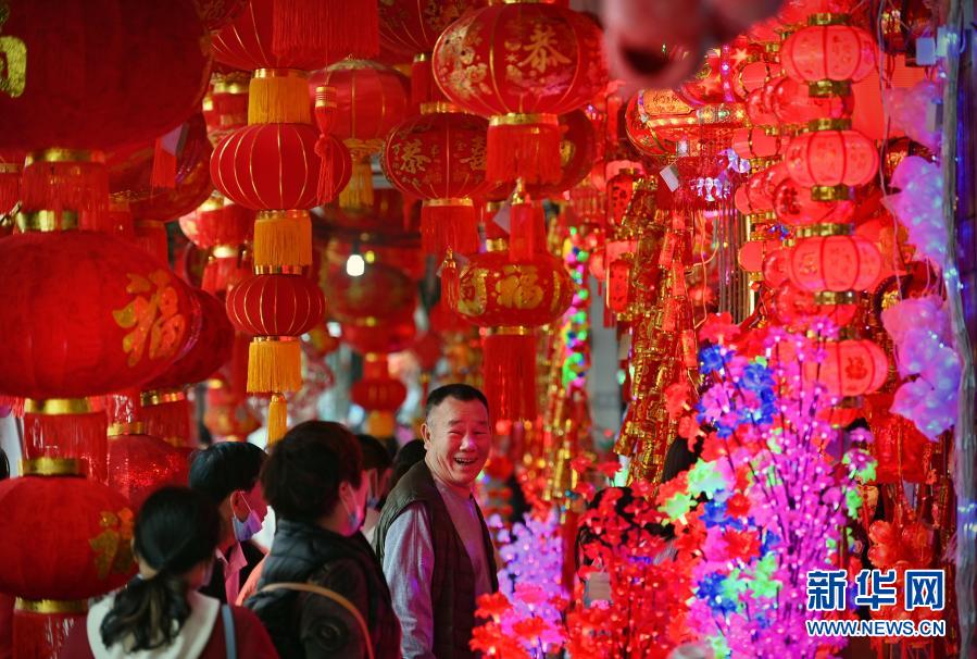 1月30日,市民在海口市博爱南路的年货市场选购新年饰品。新华社记者 郭程 摄