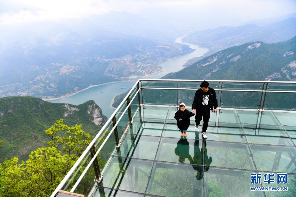 4月23日,游客在位于奉节县的三峡之巅风景区游览。
