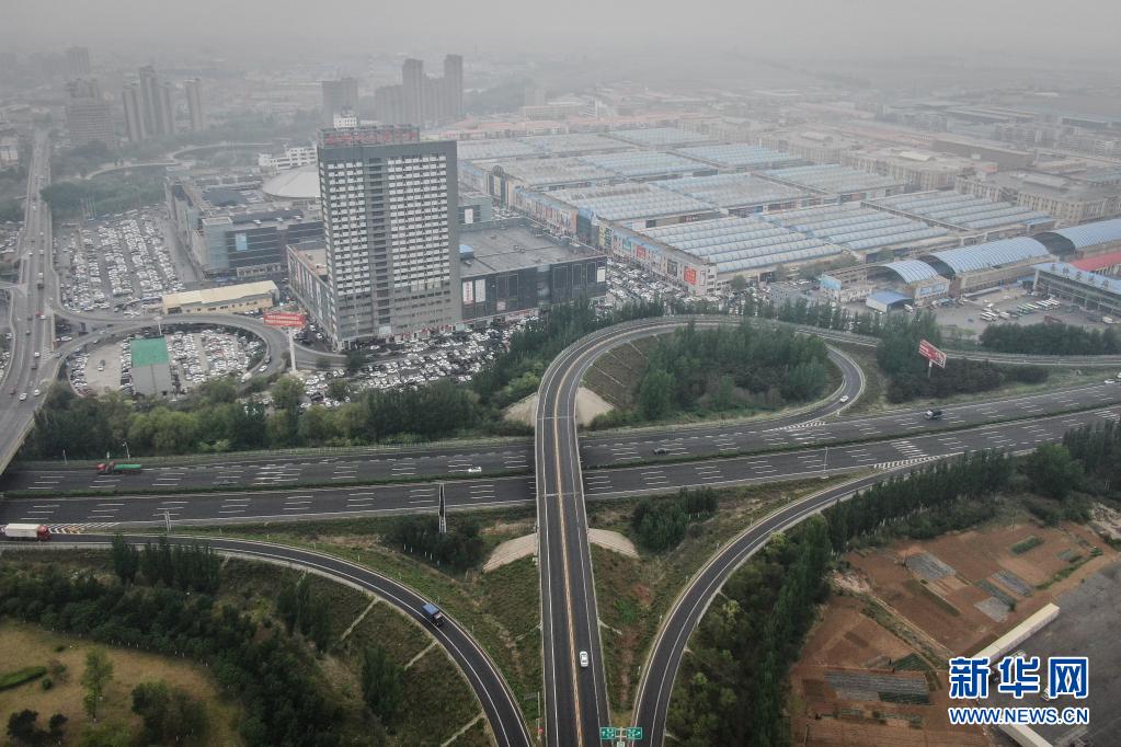 5月13日,车辆在沈大高速西柳站出入口附近的路段行驶(无人机照片)。新华社记者 潘昱龙 摄