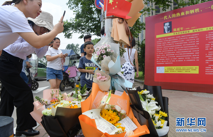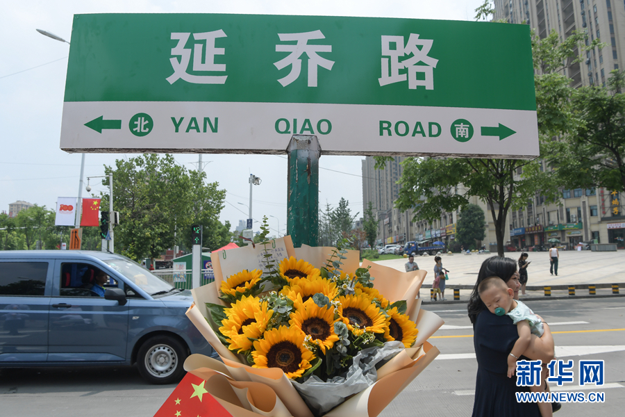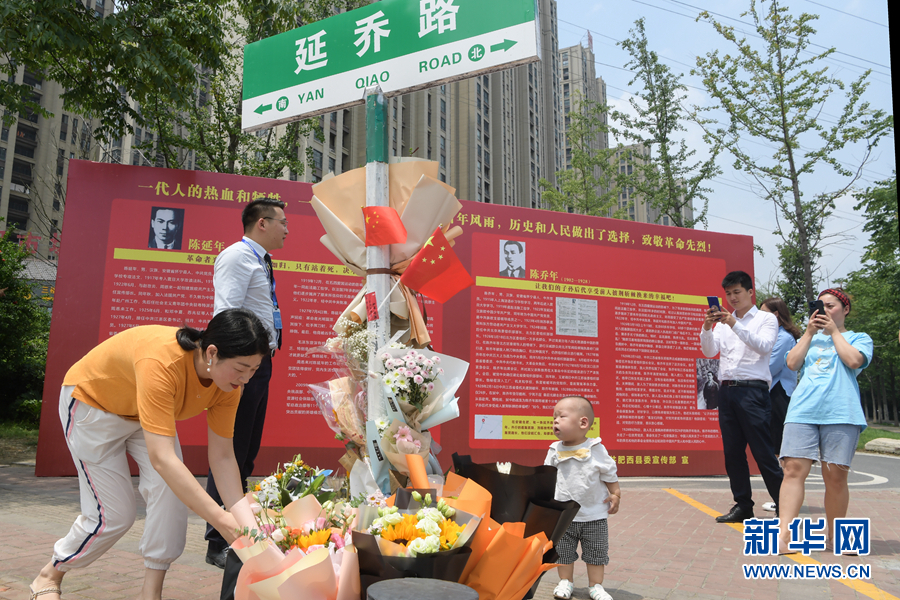 7月1日,市民来到“延乔路”路牌下献上鲜花、缅怀先烈。