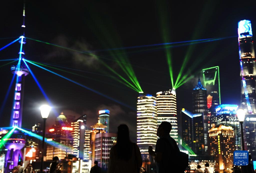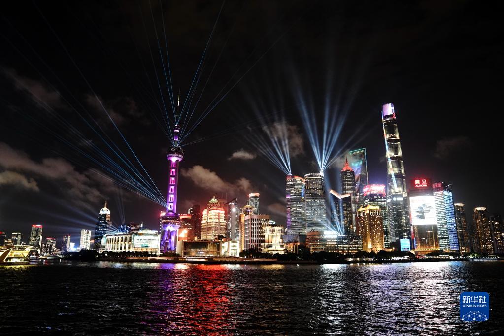 9月10日在上海外滩拍摄的灯光秀。