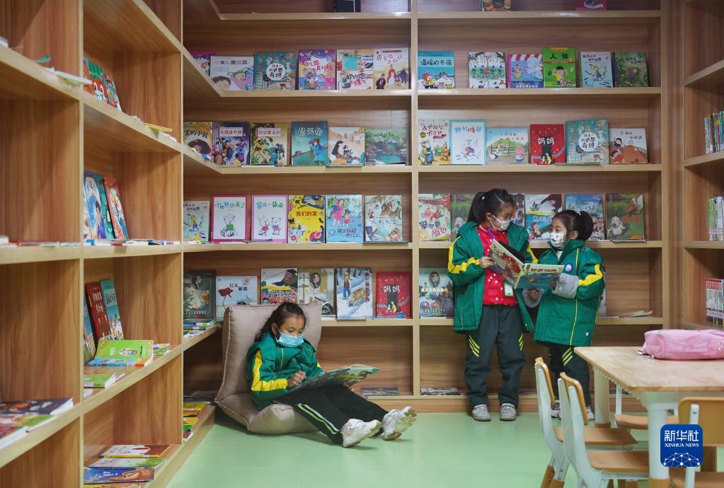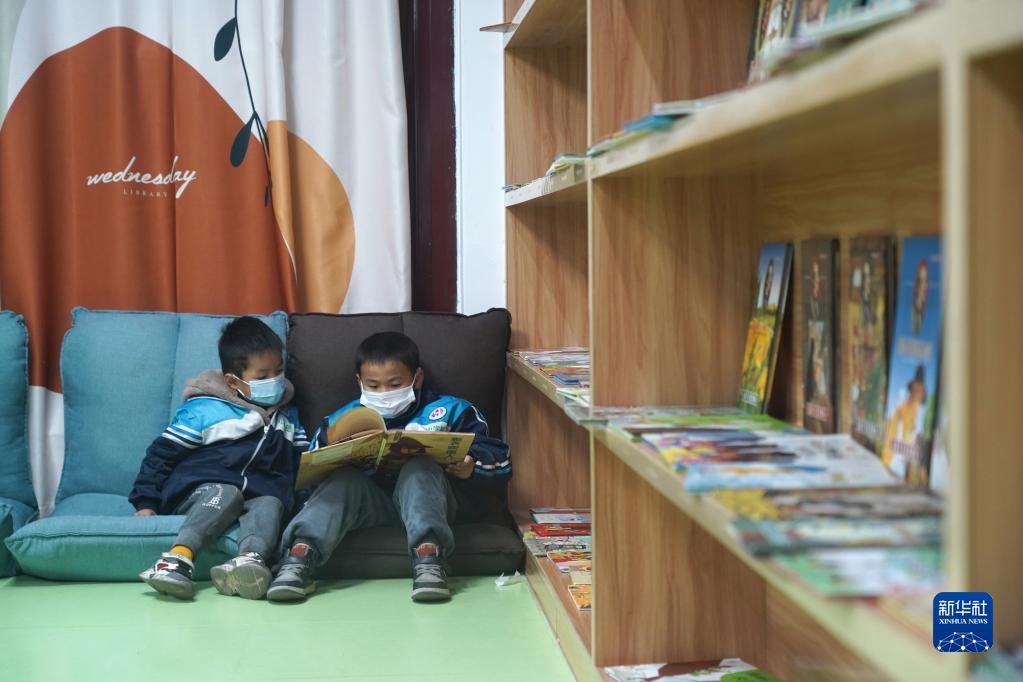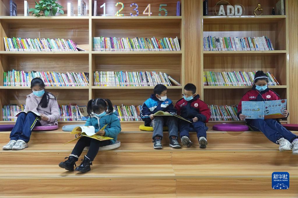 孩子们在“城市书房”阅读书籍(12月23日摄)。