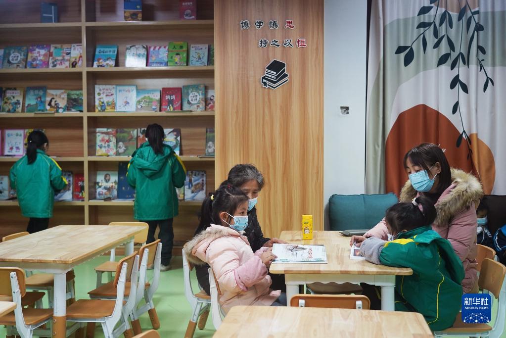 家长和孩子们在“城市书房”阅读书籍(12月23日摄)。