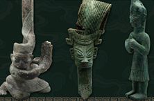 最早发现于20世纪20年代末的三星堆遗址,算得上“横空出世”。1986年在遗址祭祀区发掘1、2号“祭祀坑”,出土青铜神像、青铜人像、青铜神树、金面罩、金杖、大玉璋、象牙等珍贵文物千余件,多数文物前所未见,尤以80余件青铜雕像为前所未见的重器。这些“惊世大发现”,揭示了一种全新的青铜文化面貌。