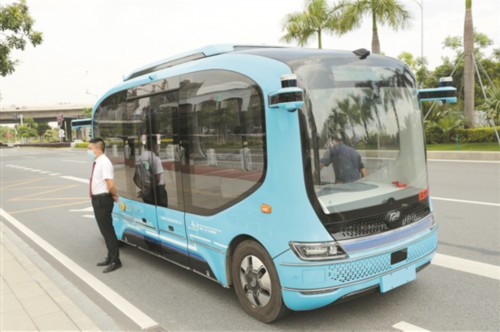 羊城晚报讯 记者张豪、通讯员陈素铃摄影报道:记者从南沙区政府获悉,近日,广州首条无人驾驶公交线路——23路自动驾驶公交示范线路(见下图)上线运营,行驶线路自横沥地铁站公交总站至灵山岛环线,市民可通过“南沙公交服务”公众号预约乘坐。