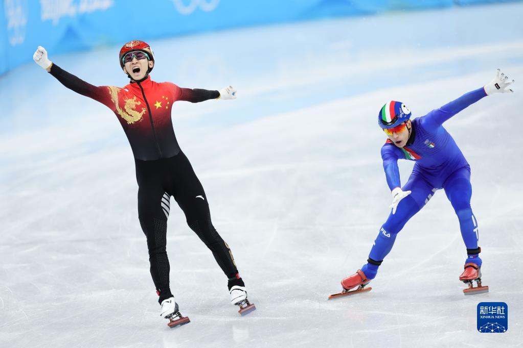 当日,在首都体育馆举行的北京2022年冬奥会短道速滑项目混合团体接力决赛中,中国队夺得冠军。
