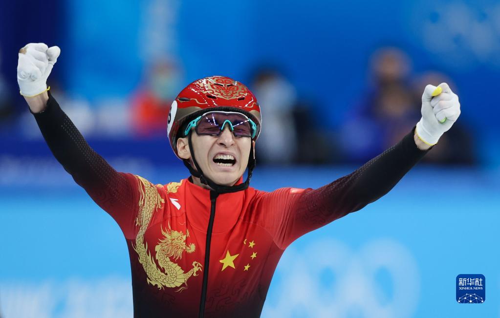 2月5日,中国队选手武大靖在比赛后庆祝。