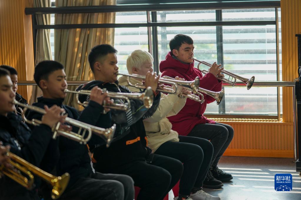 图为在重庆市特殊教育中心的练习室内,扬帆管乐团的学生们在进行练习(1月11日)。