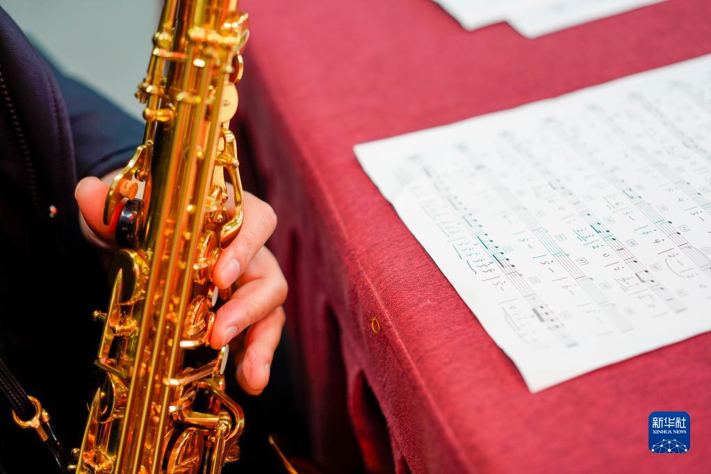 图为在重庆市特殊教育中心的一间办公室内,扬帆管乐团老师周建勋对照国际残奥委会会歌《未来赞美诗》用萨克斯进行练习(1月12日)。