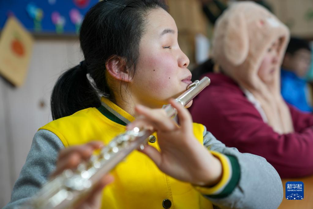 图为在重庆市特殊教育中心练习室内,一名扬帆管乐团的学生在进行练习(1月11日摄)。
