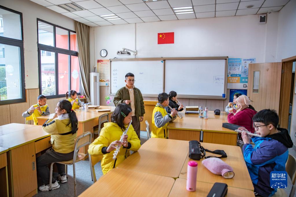 图为在重庆市特殊教育中心,扬帆管乐团老师李忻念指导乐团长笛声部学生进行国际残奥委会会歌《未来赞美诗》的分声部训练(1月11日摄)。