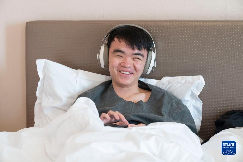 图为在北京顺义区中国残疾人体育运动管理中心,重庆市特殊教育中心扬帆管乐团小号手王太樊在宿舍内听音乐(3月2日摄)。
