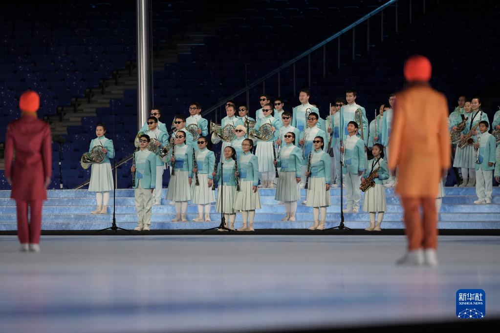 图为重庆市特殊教育中心扬帆管乐团参演团队在国家体育场“鸟巢”彩排(3月2日摄)。