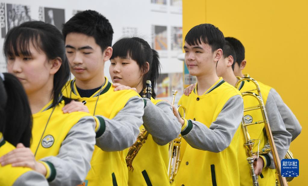 图为在北京国家体育场“鸟巢”,重庆市特殊教育中心扬帆管乐团参演学生排队准备转场排练(3月1日)。