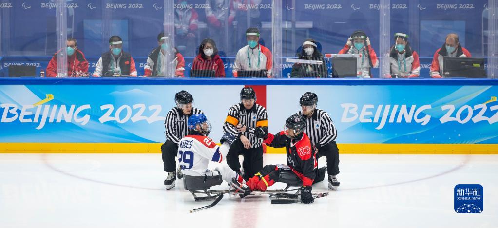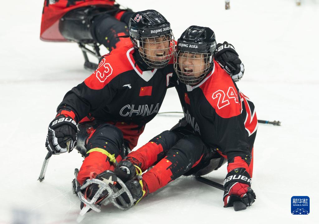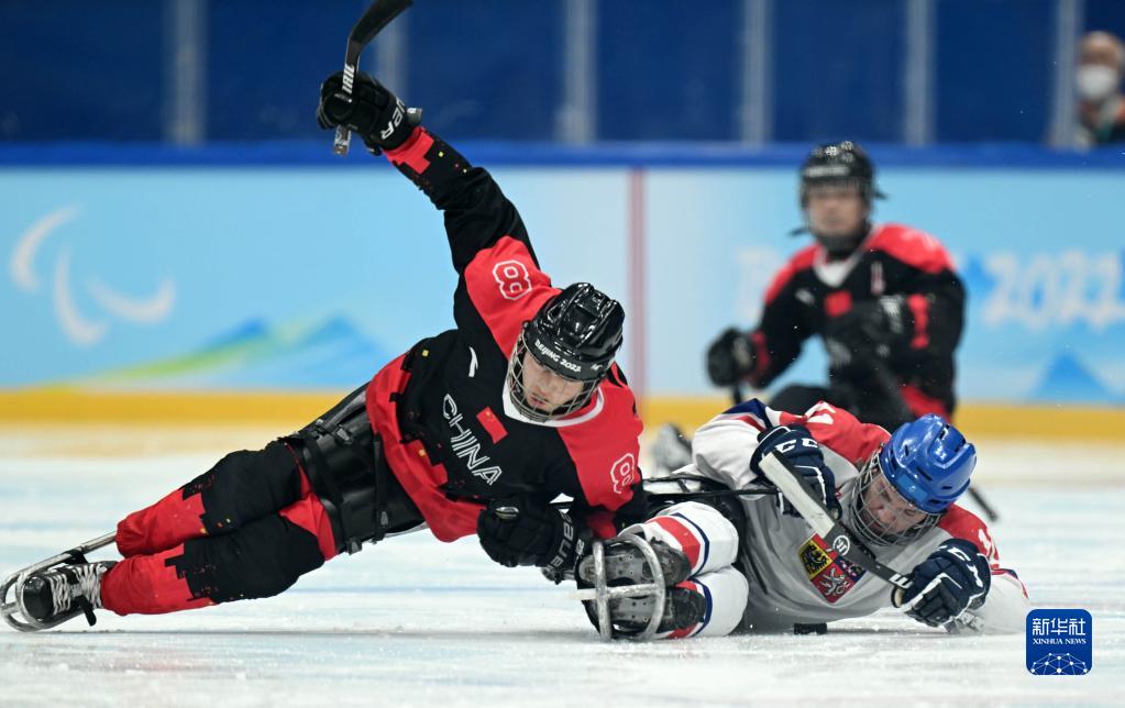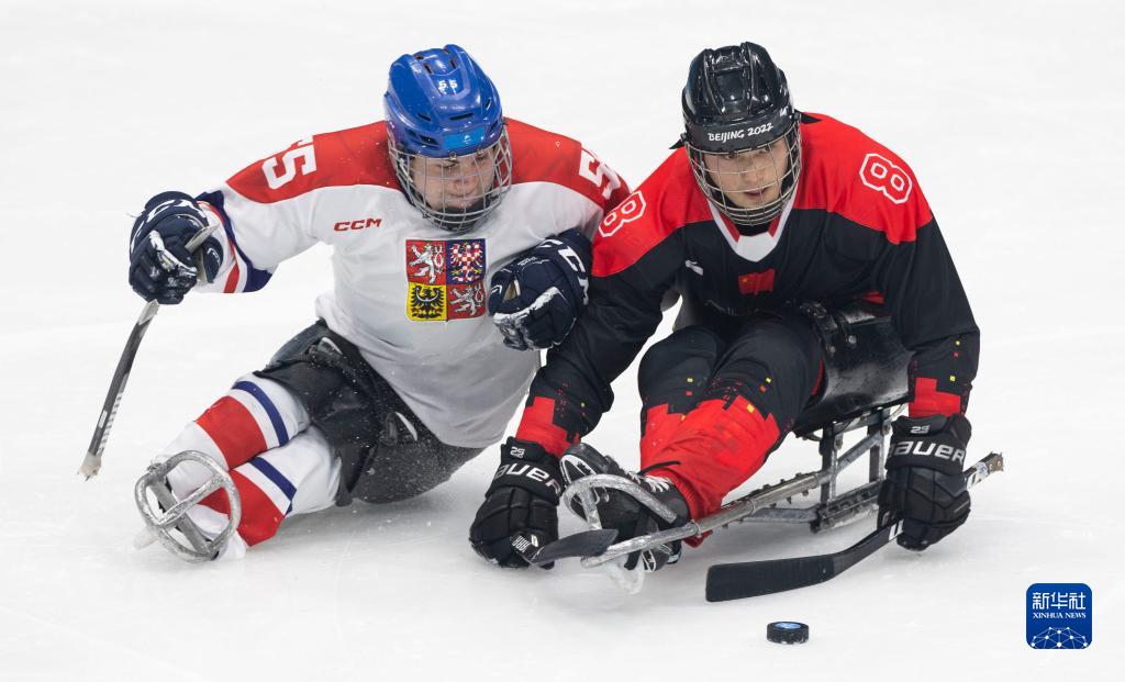当日,在国家体育馆举行的北京2022冬残奥会残奥冰球决赛资格赛中,中国队以4比3战胜捷克队。
