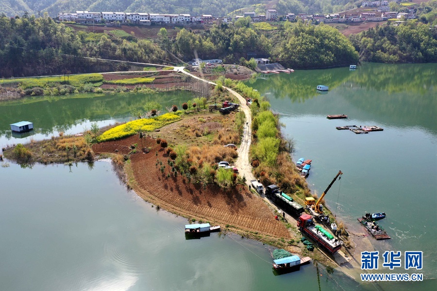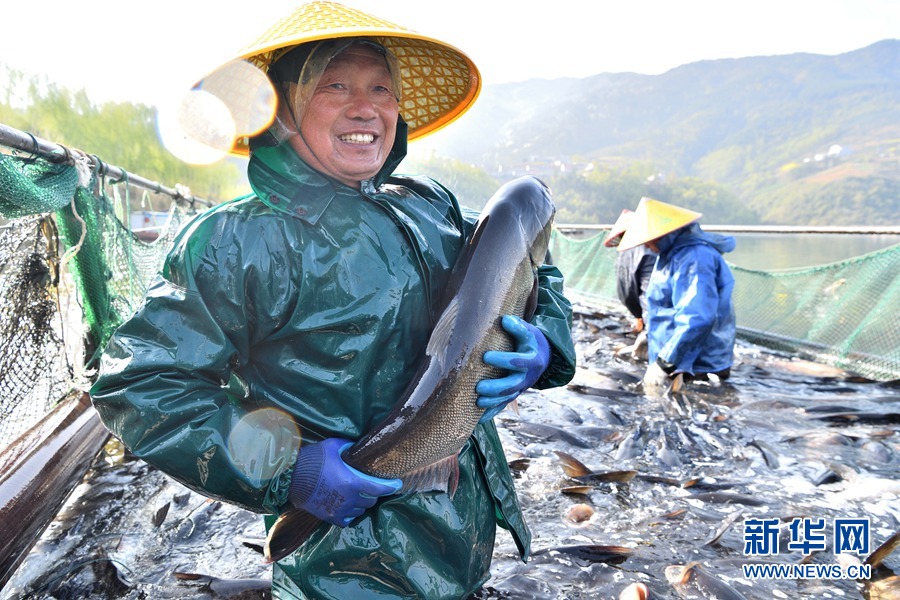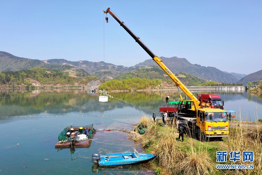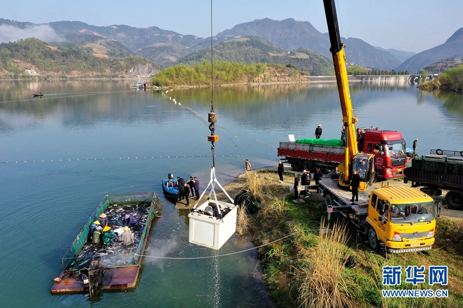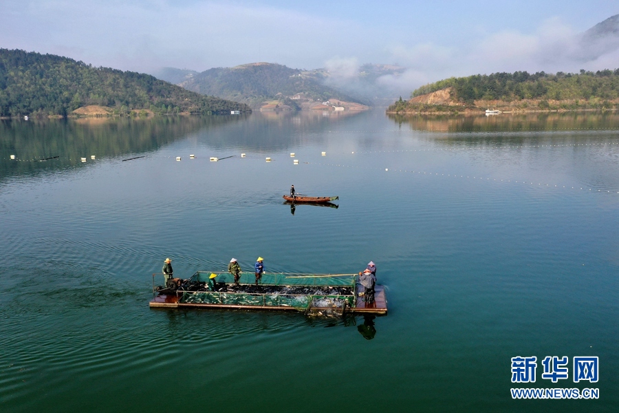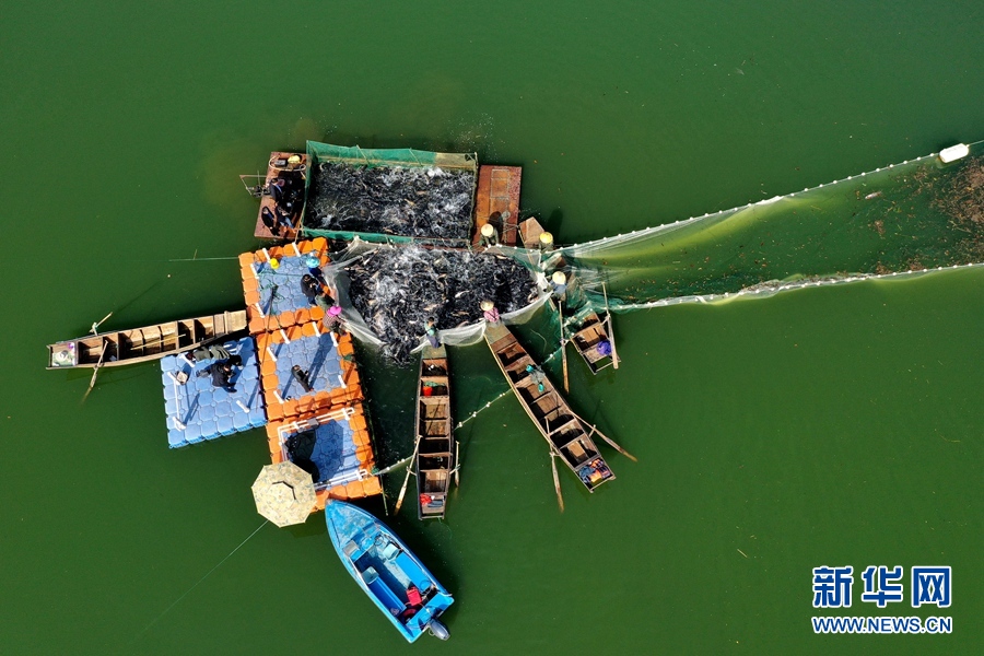 湖北省襄阳市保康县寺坪镇南河渔业农民专业合作社的渔场春捕开网。 杨韬摄 新华网发