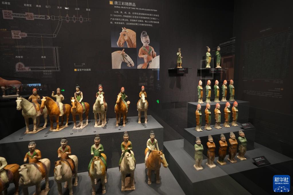 这是陕西考古博物馆展出的唐三彩随葬品(4月16日摄)。