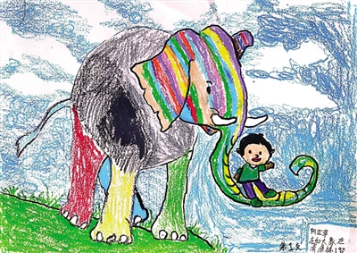《在大象鼻子上滑滑梯》 纸本设色 何江泽