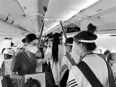 南航北方分公司地面服务保障部为学生们开辟了远离其他旅客的E区,单独为学生们办理值机手续、收运行李,加派工作人员全程引导,登机过程安全井然。在客舱中,乘务员加强对学生们的体温监测和手部消杀,增加了常用设施消毒的频率,还为学生们准备了爱心加油包,里面有N95口罩、消毒纸巾和祝福的卡片。