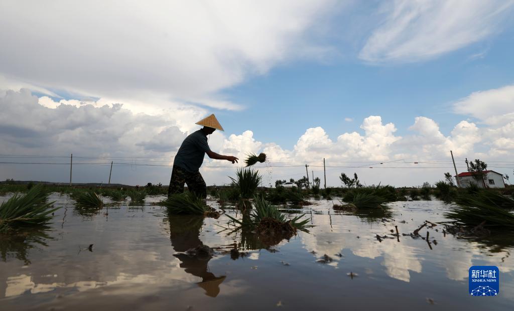 6月14日,山东省临沂市郯城县郯城街道农民准备进行水稻插秧。