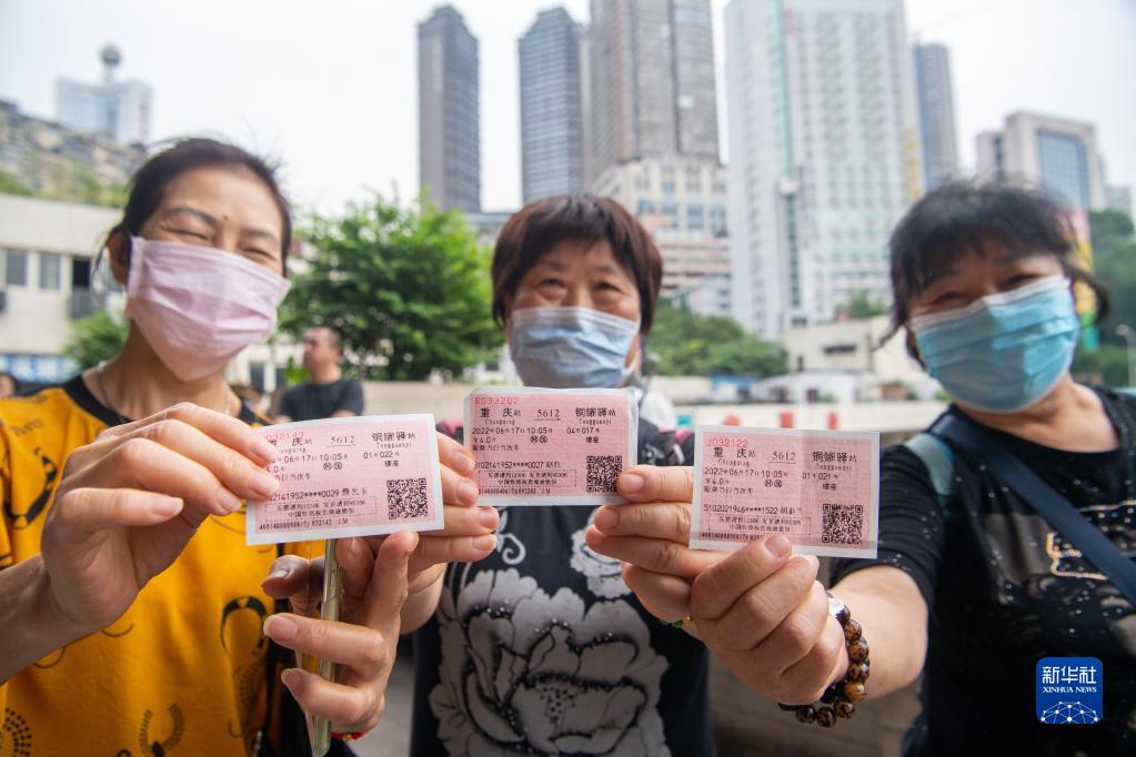 6月17日,铁路爱好者展示重庆站出发的红色火车票。