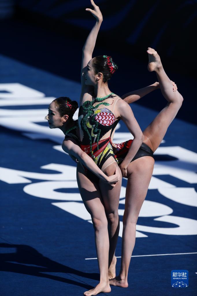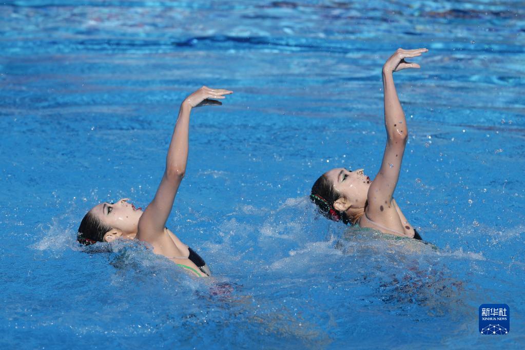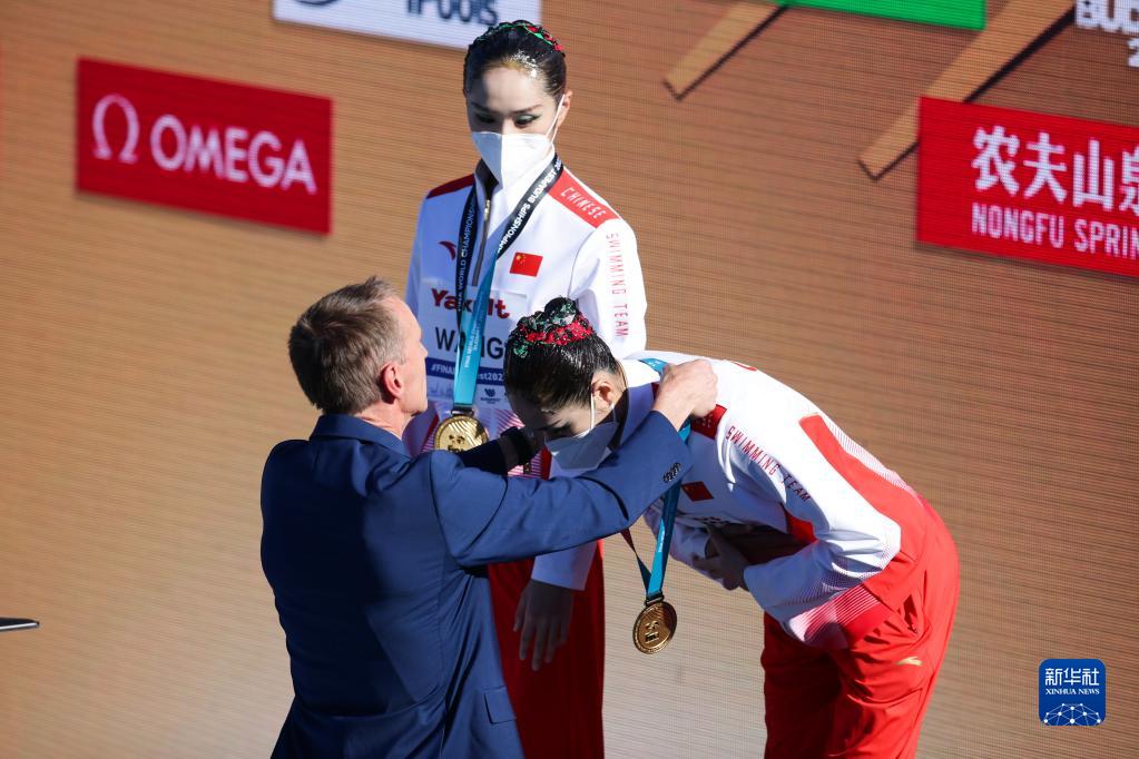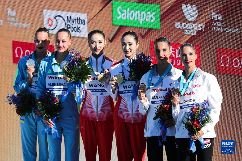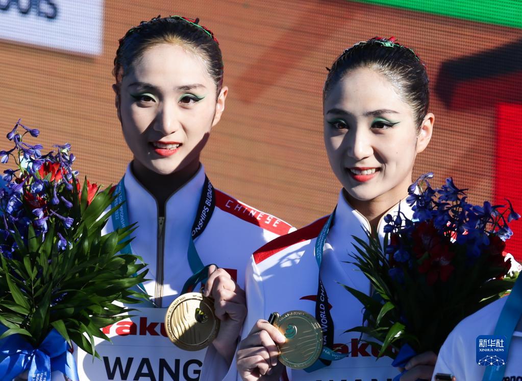 当日,在匈牙利布达佩斯举行的2022年世界游泳锦标赛花样游泳双人自由自选决赛中,中国选手王柳懿/王芊懿获得冠军。