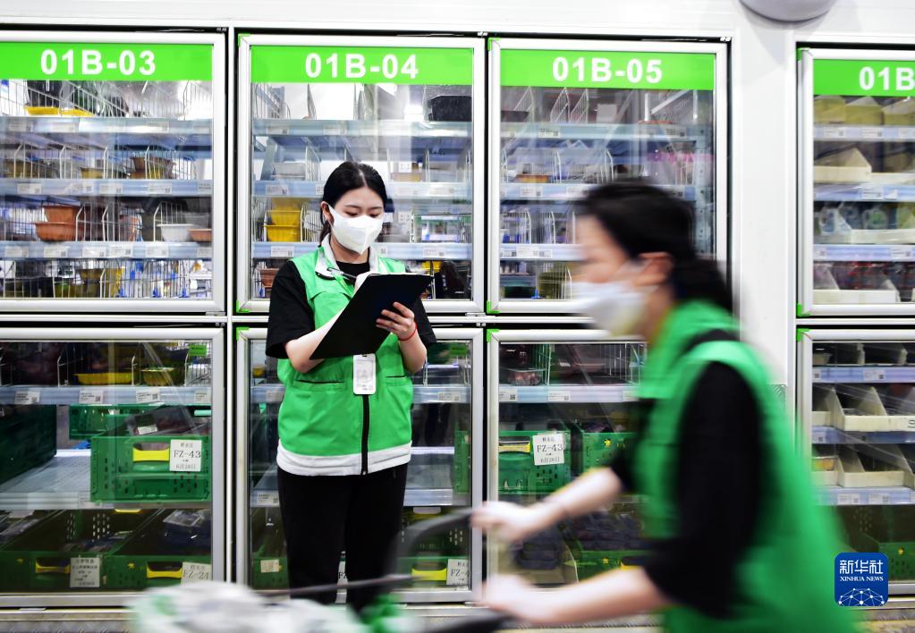 在福州市朴朴电子商务有限公司,来自泉州的2021届毕业生傅黎迁(左)在前台配送岗位上实习。落户福州工作的她,已领取1万元一次性生活补贴(6月29日摄)。新华社记者魏培全 摄