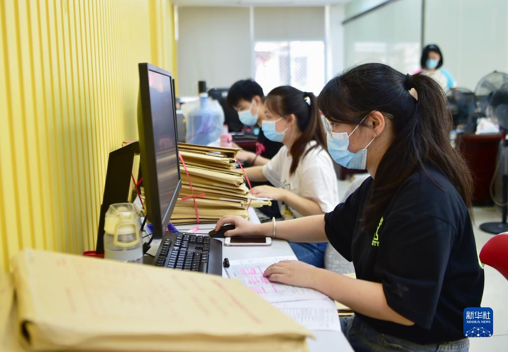 在福州市人事人才公共服务中心,工作人员把高校毕业生档案信息输入电脑(6月29日摄)。新华社记者 魏培全 摄