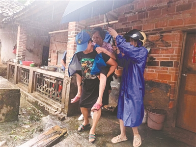 茂名市电白区那霍镇干部转移群众到安全地点。广州日报全媒体记者关家玉 通讯员卓剑斯、李华斌、邓博方 摄