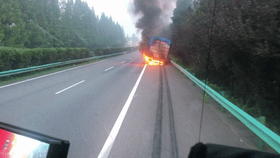 在行驶途中轮胎突然起火
