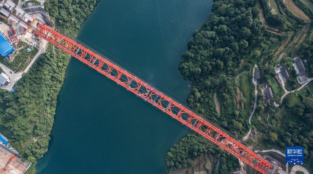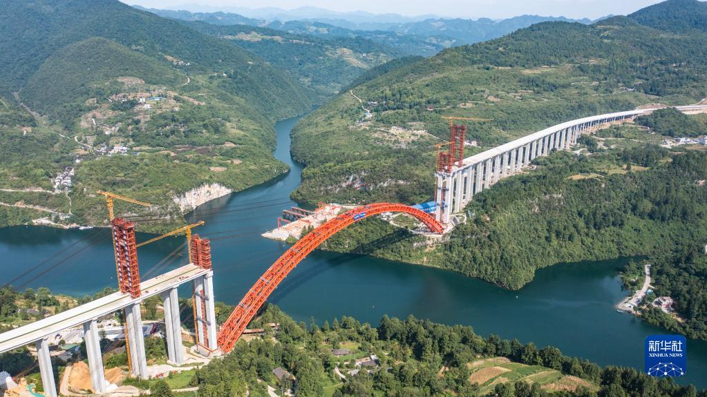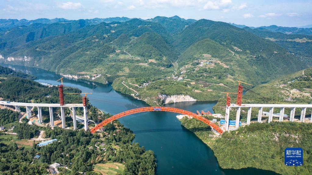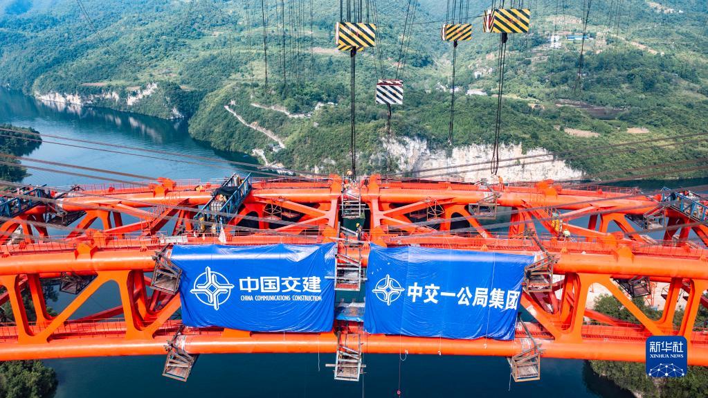 8月15日拍摄的德余高速乌江特大桥合龙现场(无人机照片)。