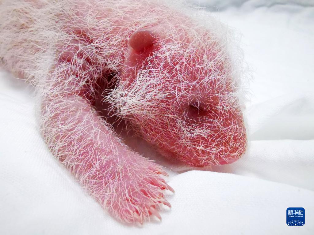 这是在中国大熊猫保护研究中心卧龙神树坪基地拍摄的刚出生不久的幼仔(8月6日摄)。