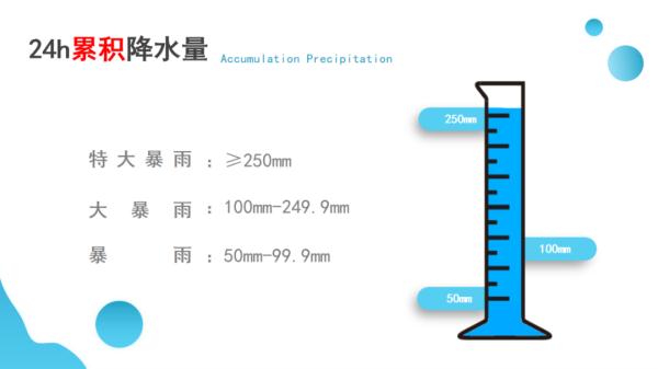 巧了,这与气象意义上对暴雨的定义不谋而合:24小时(当日)累积降雨量达到50mm以上的降雨过程为暴雨过程;若累积雨量达到100mm以上,则是大暴雨的级别;若累积雨量达到250mm以上,就是特大暴雨级别。