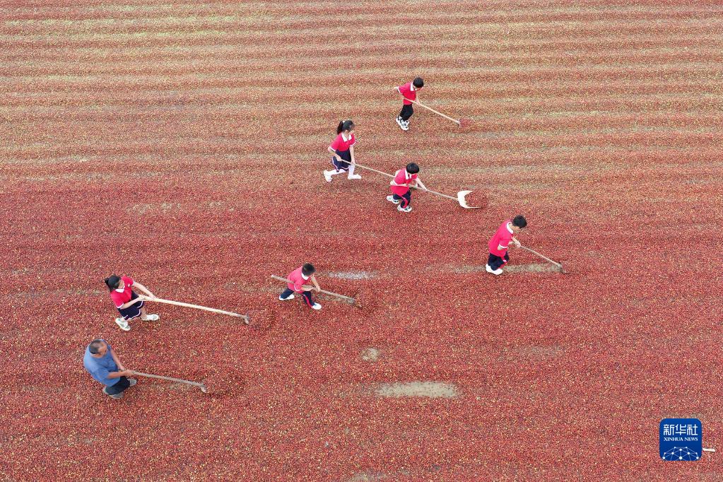 8月27日,河北省邢台市内丘县柳林镇明德小学学生在体验晾晒酸枣(无人机照片)。