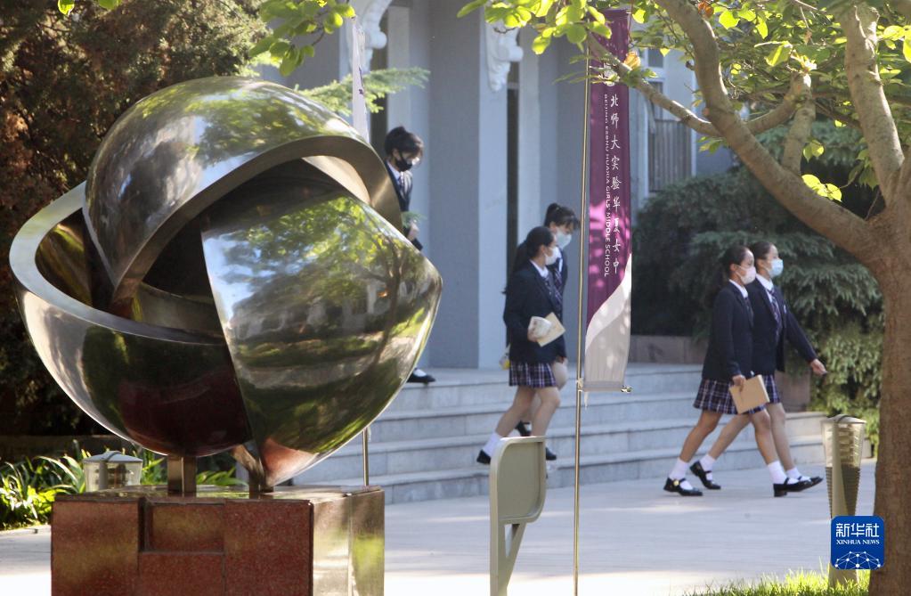9月1日,北京师范大学实验华夏女子中学的学生准备参加开学典礼。