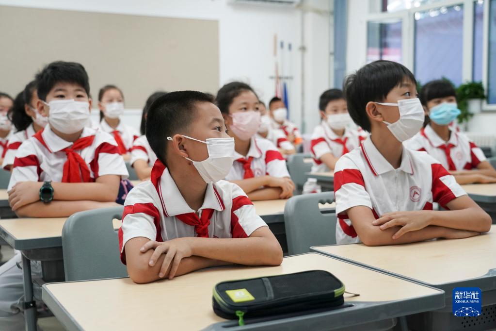 9月1日,在位于北京市海淀区的人大附中实验小学,五年级学生上开学第一课。