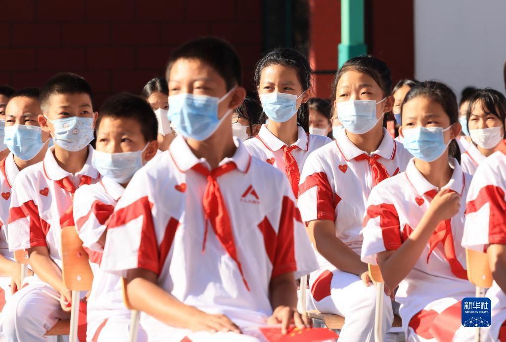 9月1日,中国人民大学附属中学分校的学生参加开学典礼。