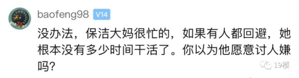 不过有很多网友都对保洁阿姨的做法表示理解,保洁工作任务繁重,工作人员大多数时候都顾不上其他的,能完成任务就好。“你以为她是愿意讨人嫌吗?”