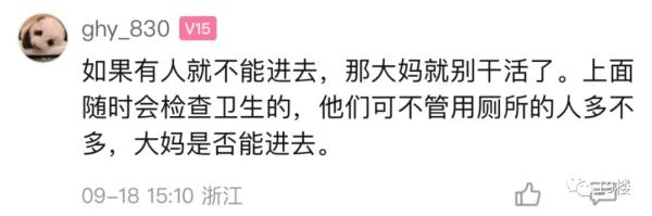 帖子的评论区,有网友说道,自己所在的写字楼里的大妈也是这样的。有点“剽悍”,对于正在如厕的男性来说有点尴尬。