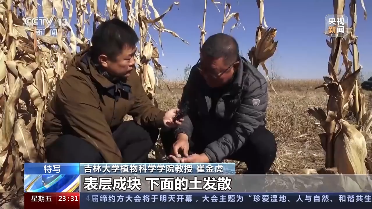 吉林大学植物科学学院教授崔金虎:表层成块,下面的土发散,像海滩那个细沙似的,所以水一浇上去之后就渗下去了,保不住水,肥也保不住。