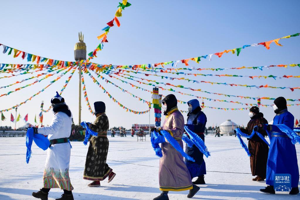 12月28日拍摄的查干湖第二十一届冬捕节祭湖醒网仪式现场。