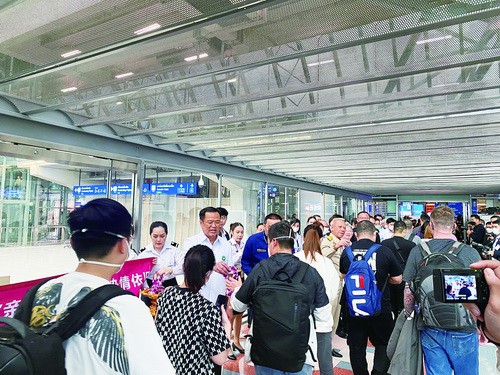 昨日13时17分,厦航MF833厦门-曼谷航班搭载269名旅客平稳落地曼谷素万那普机场,这是出入境防疫政策调整后首批前往泰国的中国旅客。泰国副总理兼卫生部部长阿努廷、泰国交通部部长奇乔布、泰国旅游和体育部部长皮帕一同到机场接机,欢迎中国旅客赴泰旅游。