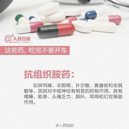 如说明书的“副作用与禁忌”一项中出现了“可见嗜睡、困倦”或“不得驾驶机、车、船、从事高空作业、机械作业及操作精密仪器”等字样,则服药期间不宜驾车。
