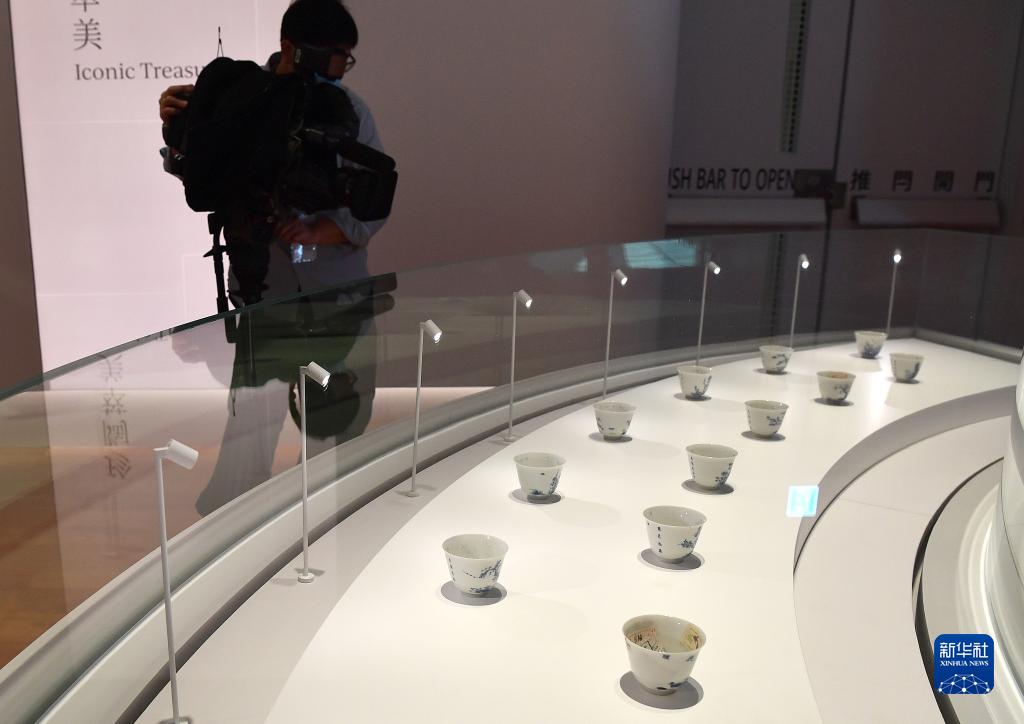 1月19日,记者在拍摄“青花十二月花卉纹诗句杯”。