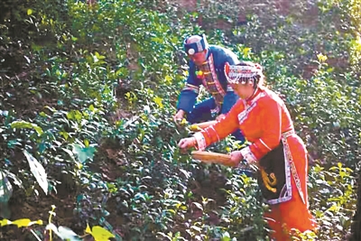 人勤春来早,乳源村民采摘九节茶。